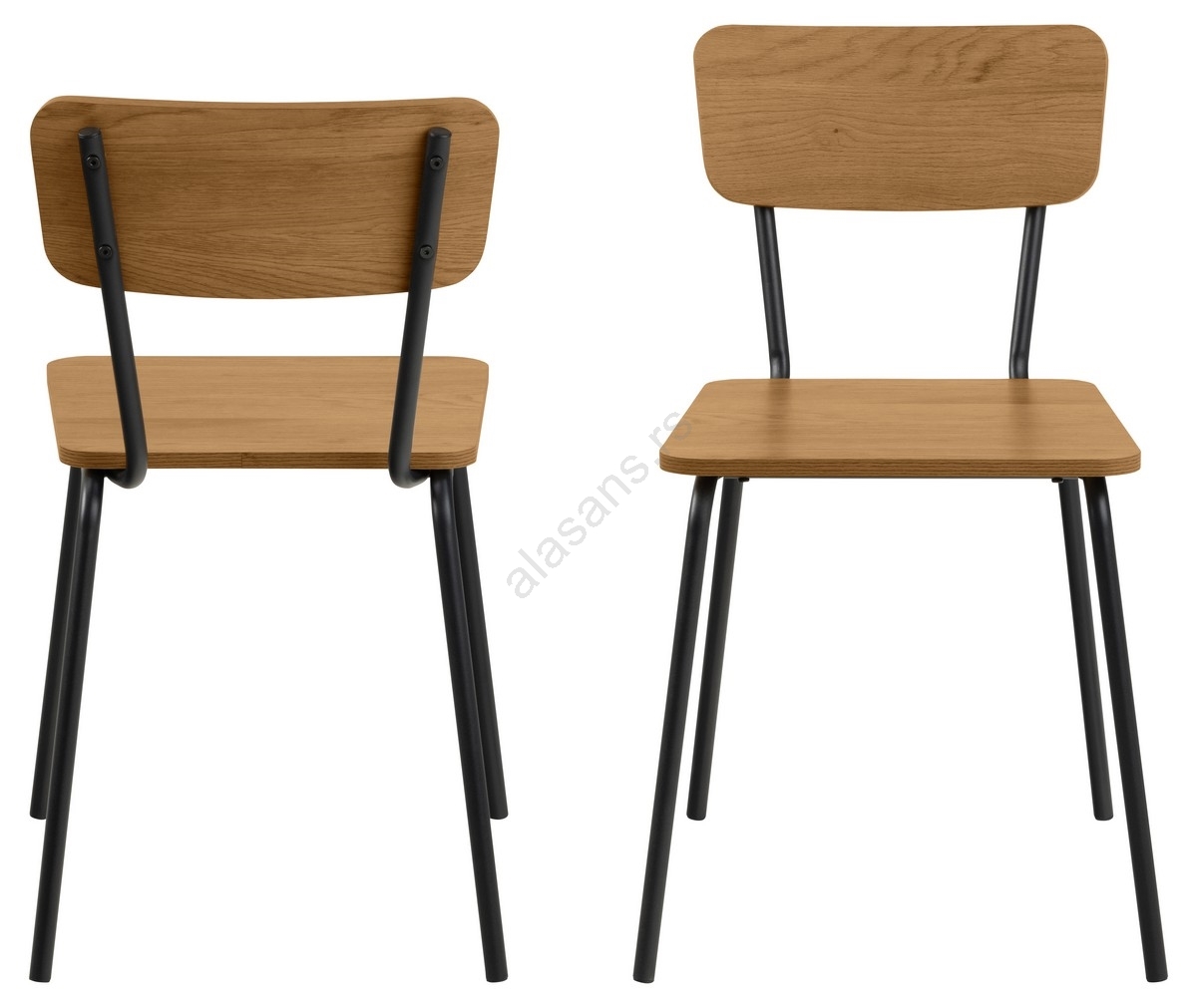 • Pravougaono sedište i naslon u izgledu hrasta povezani su cevnim crnim čeličnim ramom.