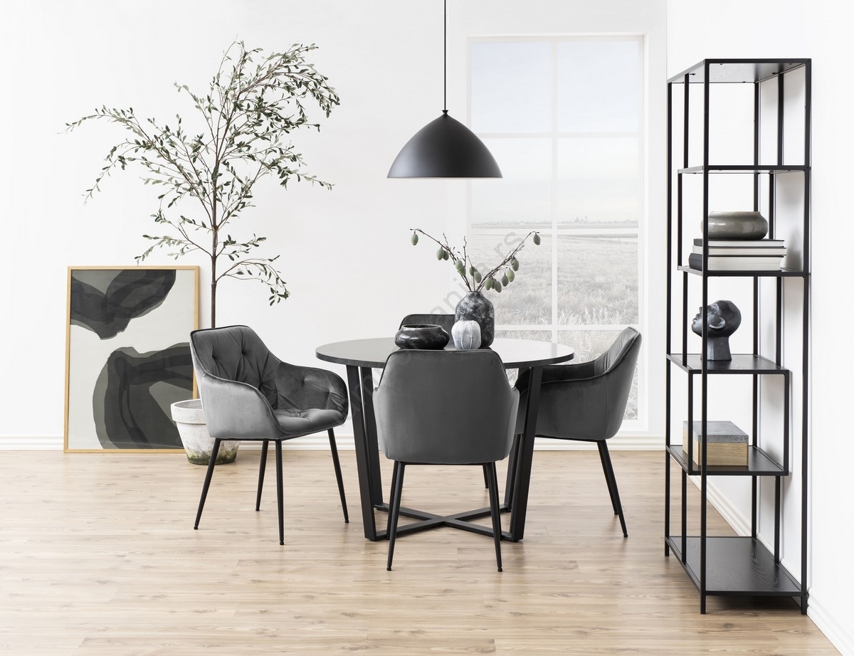 • Presvlaka Vic tamno siva, postolje mat crne boje od grubo praškasto farbanog čelika, tapacirana.
