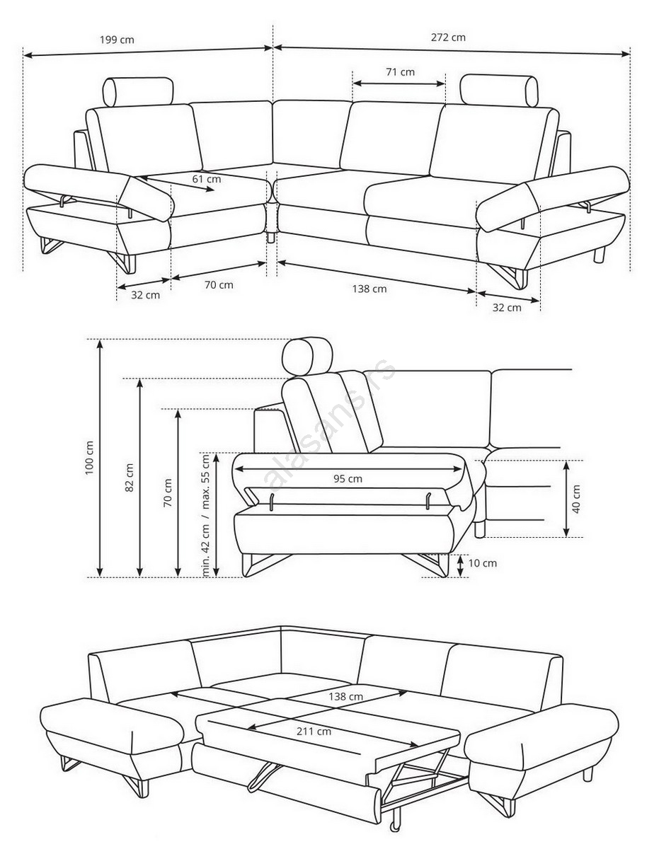 • Zahvaljujući spavaćem mehanizmu (tipa delfin) lako se pretvara u udoban prostor za spavanje.