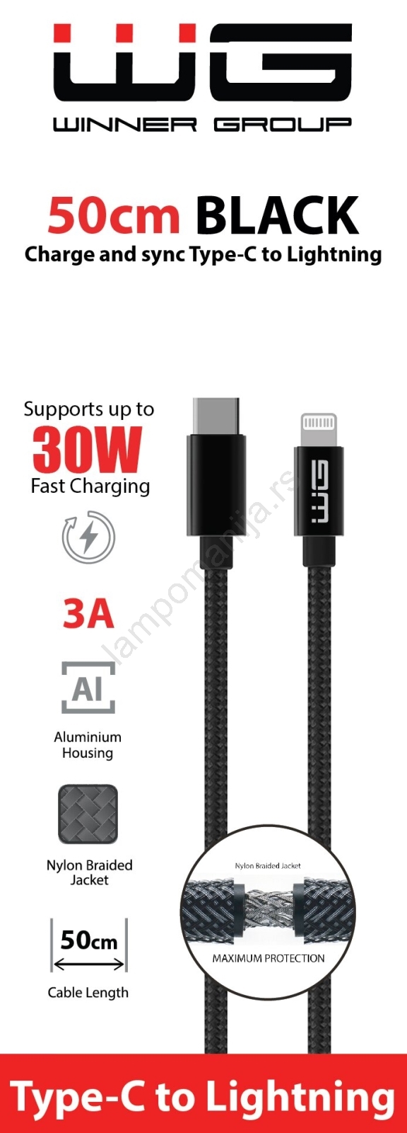 Winner Group - USB kabl Lightning / USB-C 60W 50cm crna