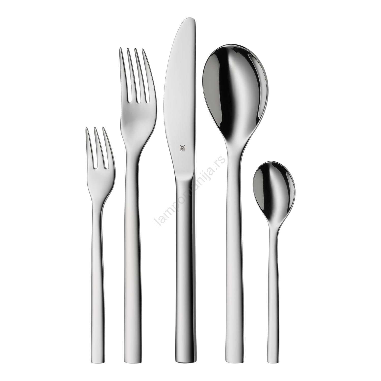 • Set od 30 delova pribora za postavljanje stola za 6 osoba: 6 viljuški, 6 stolnih noževa, 6 kašika za supu, 6 desertnih viljuški i 6 kašičica.