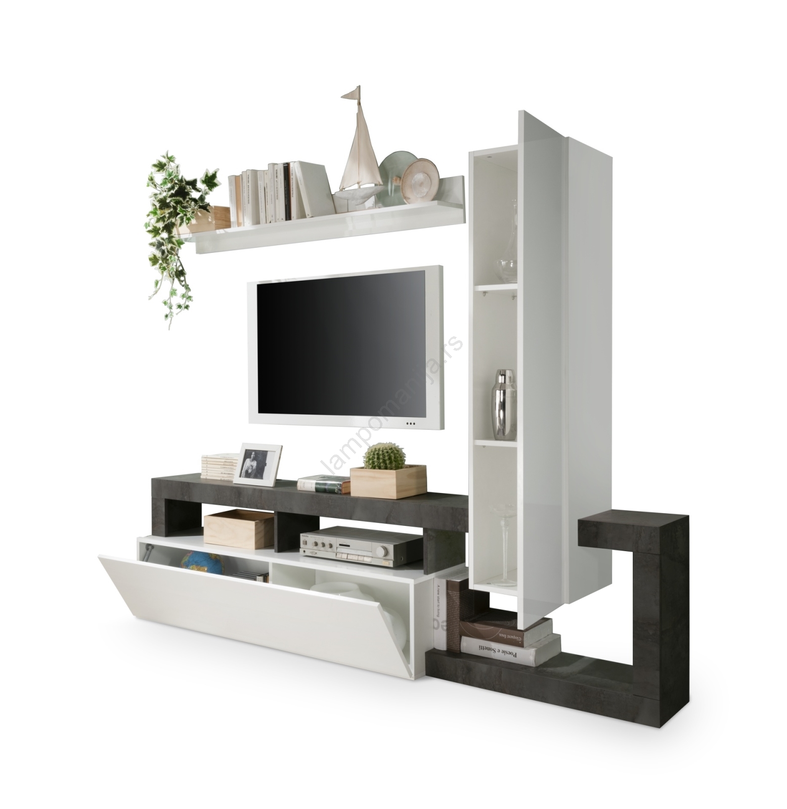Zidna garnitura za dnevni boravak LENOR, bela/antracit