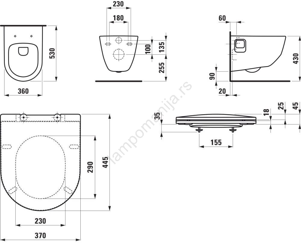 Zidna WC šolja PRO + WC daska prigušiva PRO + dugme za ispiranje DUAL LIS + podžbukni modul + izolaciona podloga